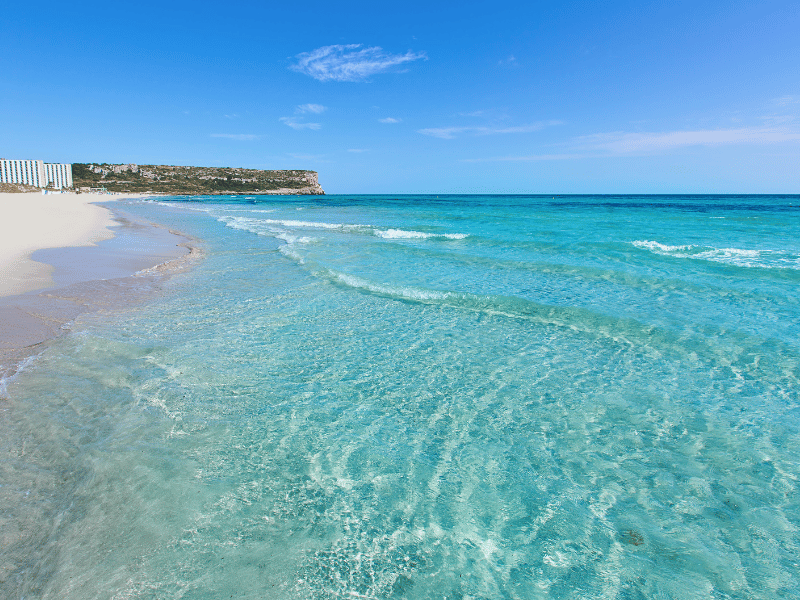 La plus longue plage de sable de Minorque, parfaite pour la baignade et les familles.